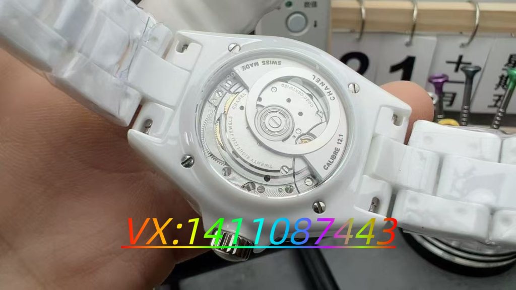核心工藝的還原度直接決定復刻的“仿真度”,BV廠在香奈兒標志性工藝上實現突破。針對J12系列的陶瓷成型工藝,其不僅還原了38mm中性表徑的經典尺寸,更優化了表圈凹槽設計,將舊款的30個凹槽增至40個,使表盤視覺更顯寬闊平衡,與正品新款設計保持同步。在機芯這一核心部件上,BV廠采用9015機芯改裝香奈兒專屬CALIBER12.1自動機芯,通過調整擺輪位置、復刻日內瓦條紋夾板紋路等方式,實現95%的視覺還原度,背透設計下的機芯細節連專業人士都需仔細甄別。而PREMIERE系列的皮穿鏈工藝,完全遵循正品純手工交織標準,將精鋼鏈條與黑色羊皮精準契合,開合力度經2000次測試無衰減,解決了普通復刻鏈條卡頓問題。