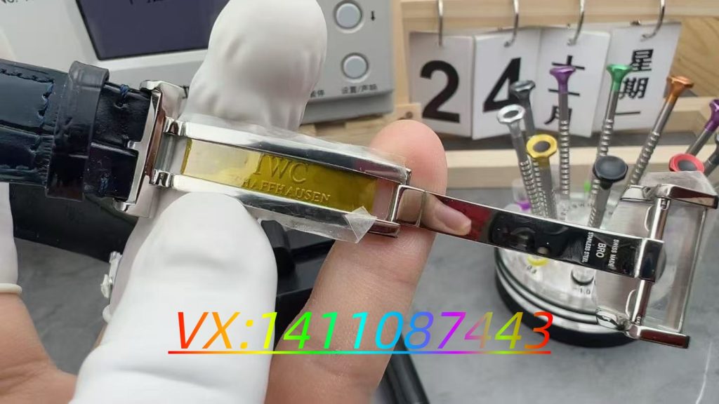 ZF 廠標配優(yōu)質(zhì)小牛皮表帶,壓鱷魚紋路柔軟舒適,無需長時間磨合。蝴蝶式表扣做工扎實,IWC 徽標刻字清晰,開合手感清脆穩(wěn)固。其 14mm 左右的厚度雖略厚于 APS 廠,但視覺上無明顯笨重感,適配 16-19cm 腕圍,經(jīng)典設(shè)計在正裝場合更顯沉穩(wěn)。?